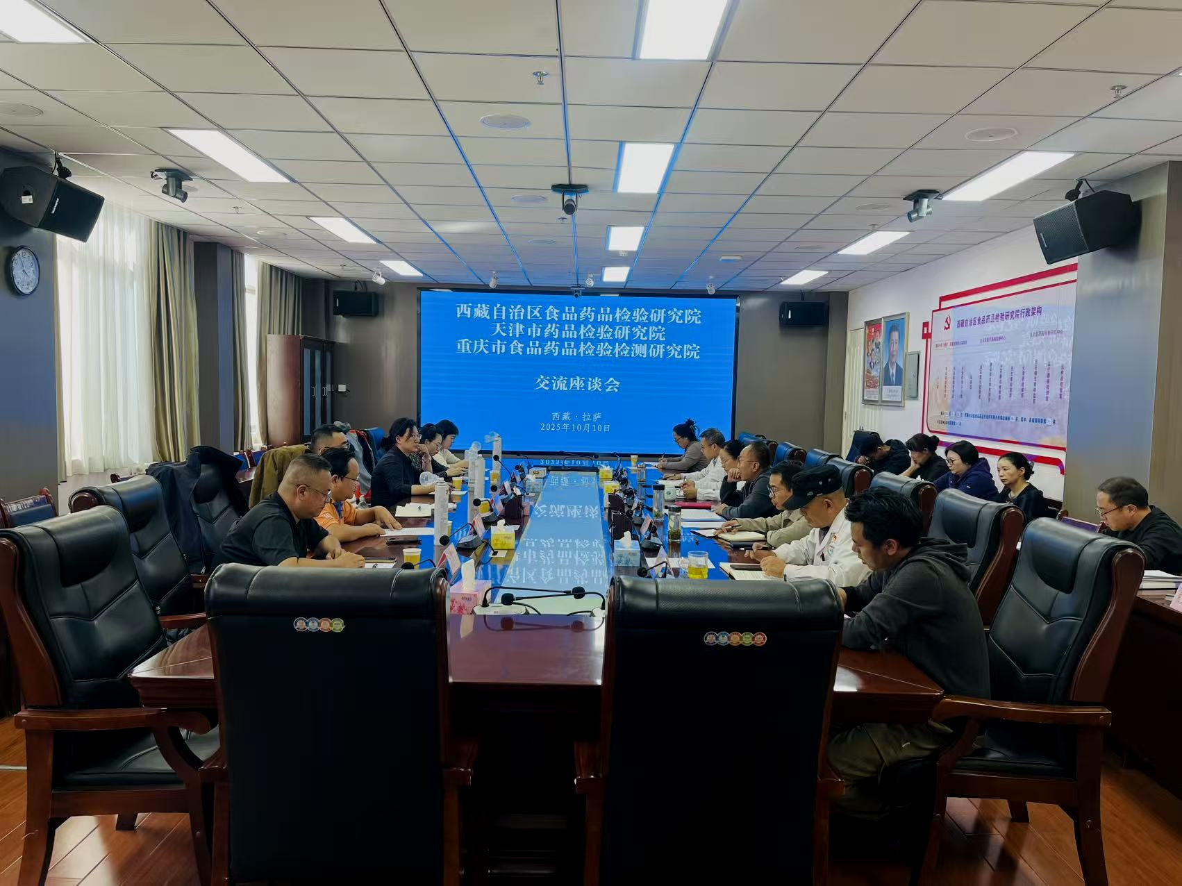 为加强“三品一械”检验检测领域技术交流与协同发展,2025年10月10日下午,津渝藏三地技术交流座谈会在西藏自治区食品药品检验研究院召开。天津市药品检验研究院、重庆市食品药品检验检测研究院和西藏自治区食品药品检验研究院领导班子及各科室负责人参加座谈。