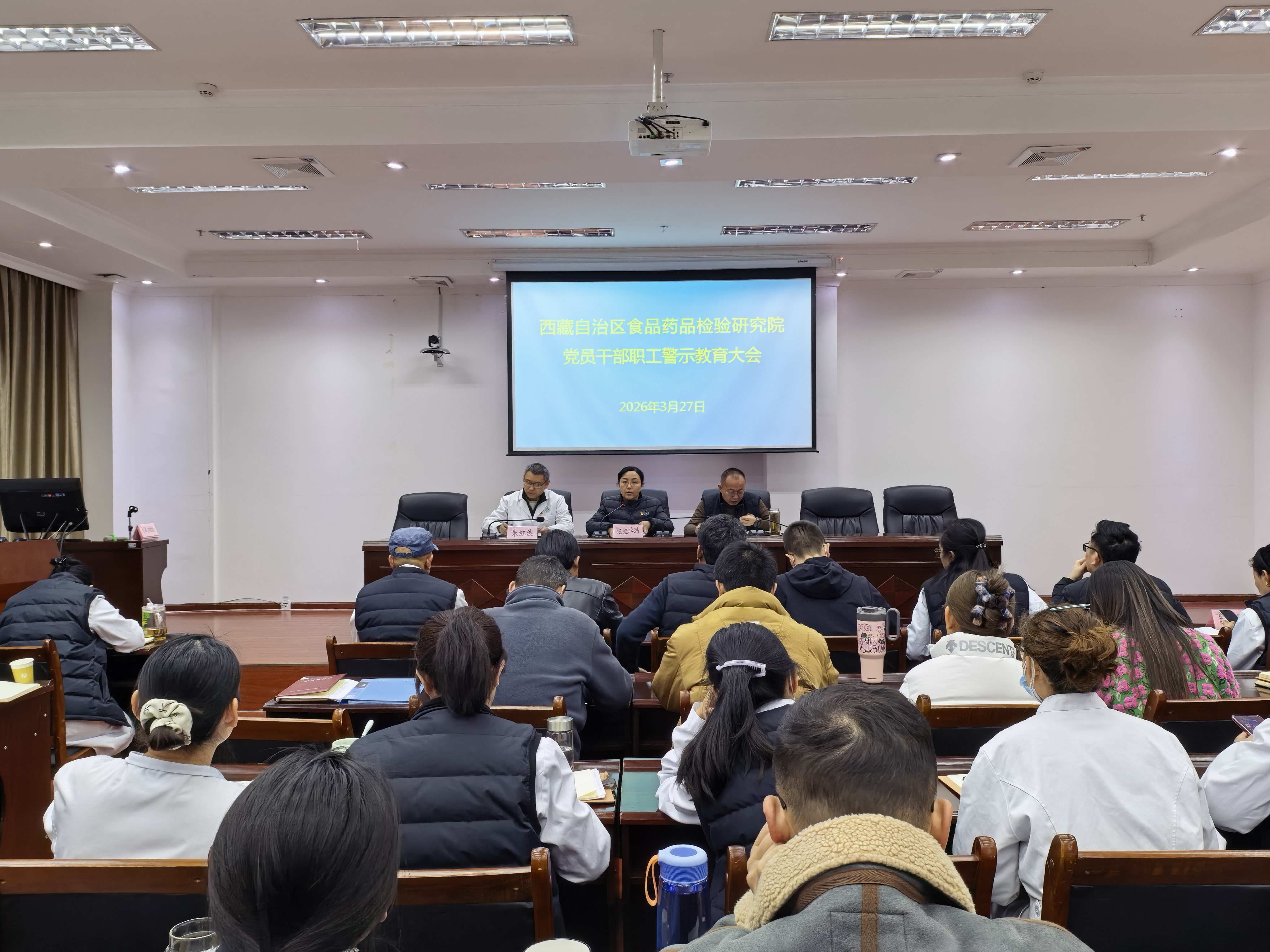 为了更好的贯彻习近平总书记关于全面加强党的纪律建设的重要论述精神,深入贯彻落实全面从严治党各项要求,进一步加强党风廉政建设和反腐败工作,教育引导广大党员干部职工筑牢拒腐防变思想防线。2026年3月27日,区食药检院召开党员干部职工警示教育大会,受院党委书记、副院长张月娥委托,院党委委员、副院长达娃卓玛主持会议,全体党员干部职工54人参加会议。